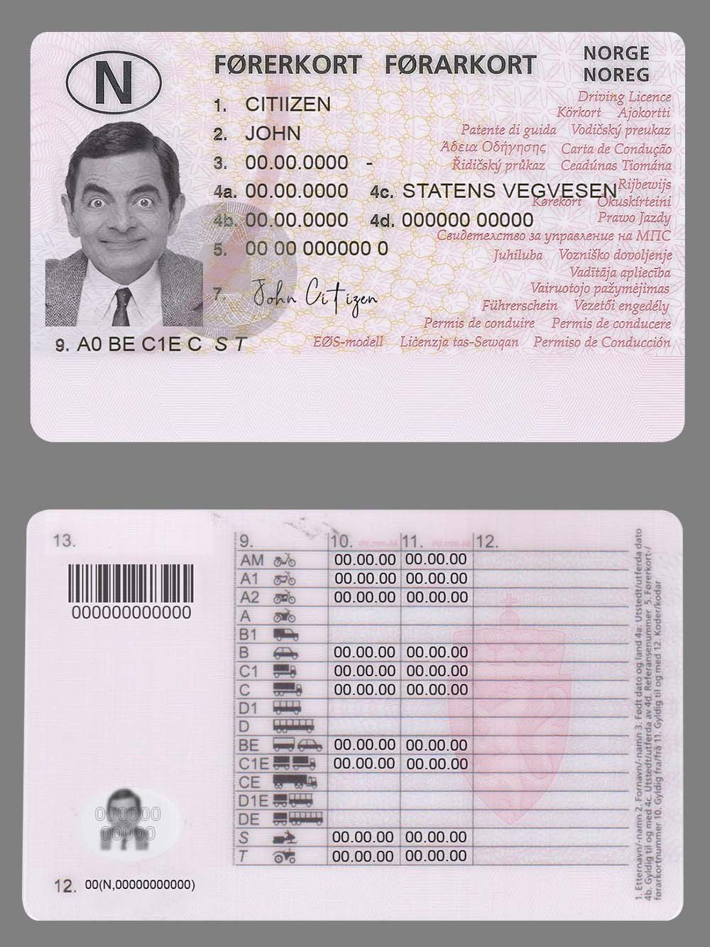 北欧| Norway DL挪威驾照/驾驶证PS/PSD模板(V1)