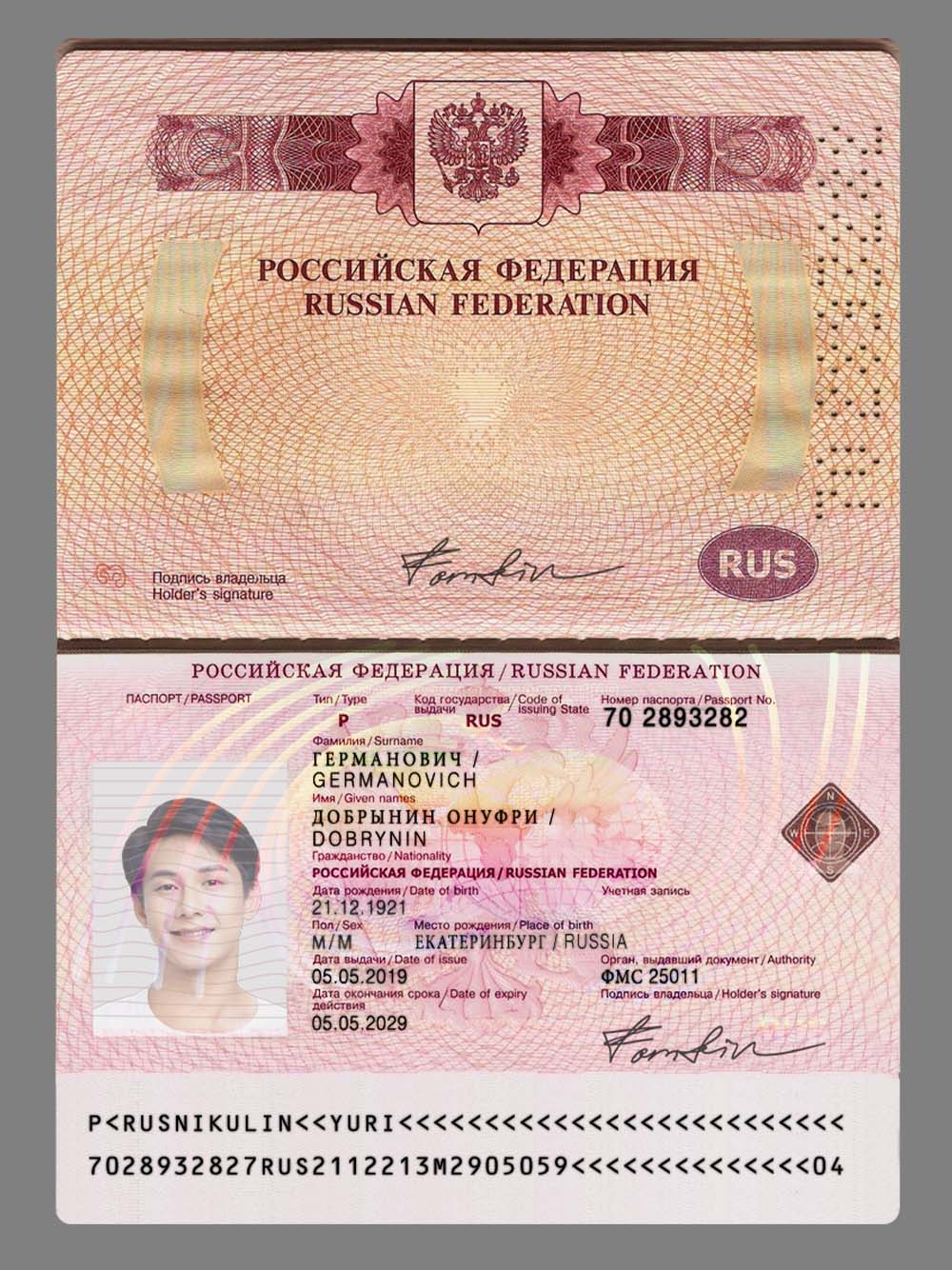 此为俄罗斯新版护照,文件内包含所有用到的字体且所有字段可编辑,仅需要简单的修改下个人信息,替换照片即可使用。