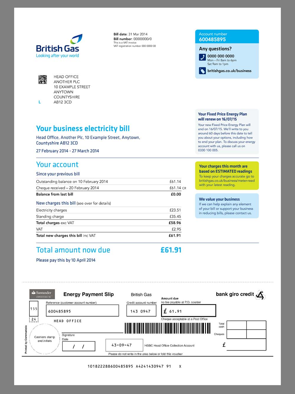 UK British Gas Company Business Utility Bills英国公司水电费账单/地址证明pdf模板